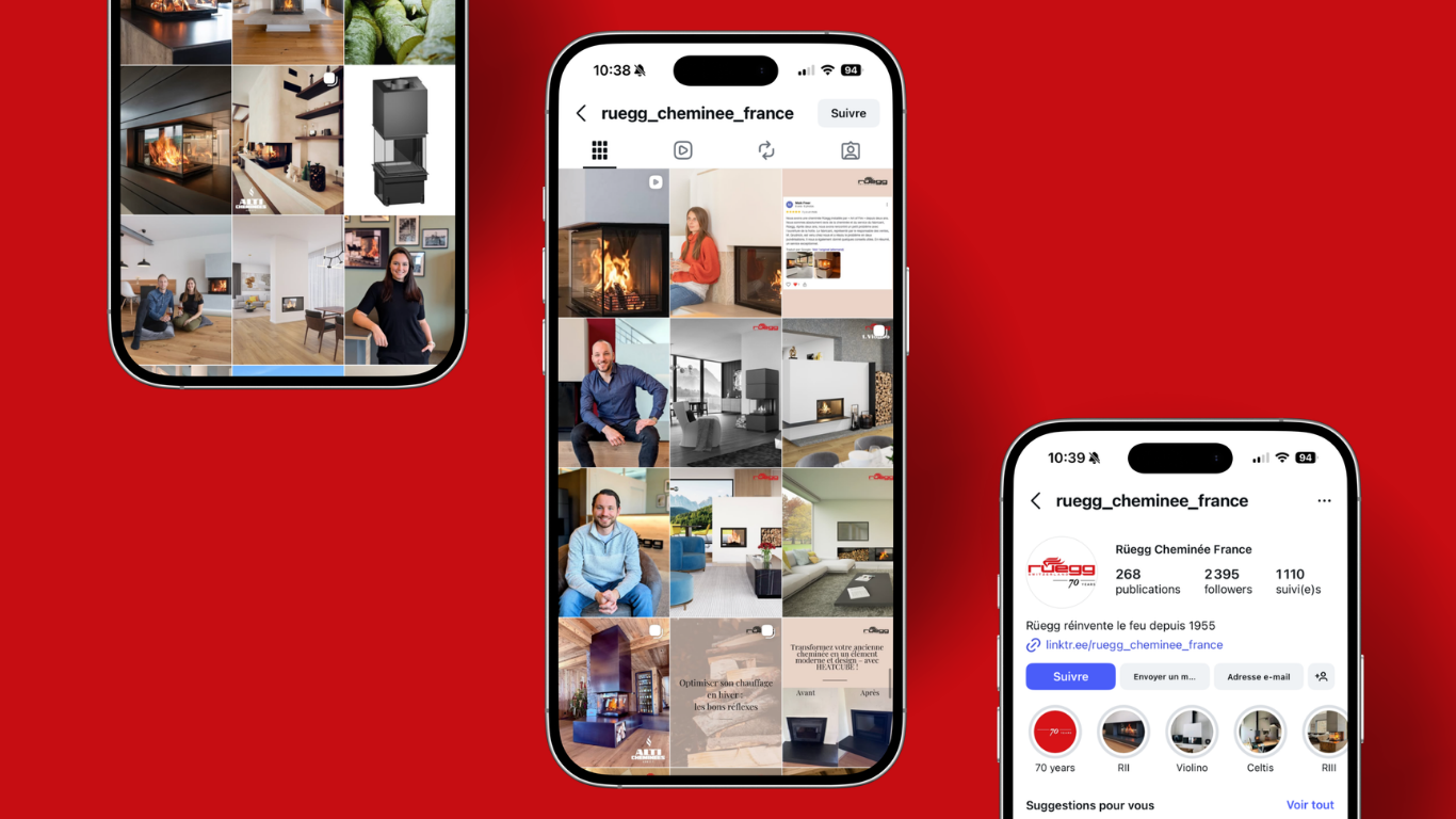 Dans un contexte de développement de sa visibilité digitale et de valorisation de son expertise auprès de prescripteurs (architectes, partenaires et installateurs), Ruegg souhaitait structurer sa présence en ligne et renforcer sa communication digitale. L’objectif : développer une stratégie de contenu cohérente et professionnelle afin d’améliorer la visibilité de la marque sur les réseaux sociaux et de soutenir son positionnement haut de gamme.
