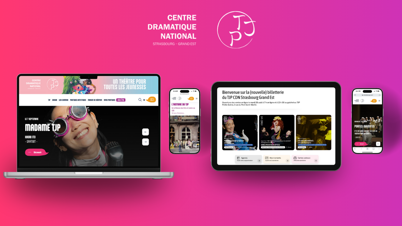 Pour répondre aux besoins du TJP Centre Dramatique National, nous avons réalisé la refonte complète de leur site web. Développé sur-mesure et en étroite collaboration avec leur équipe, ce nouveau site allie modernité, esthétisme et performance.